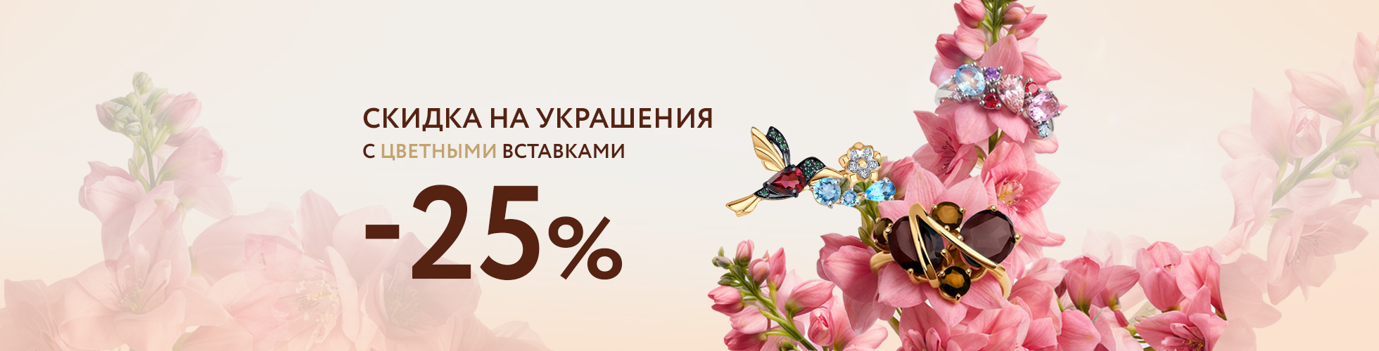 Мы объявляем акцию «Цветной апрель»: скидка 25% на все украшения с цветными вставками!